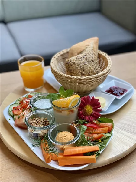 Frühstücksvielfalt: Starten Sie entspannt in den Tag mit liebevoll gelegten Frühstücksplatten, regionalen Aufstrichen und fair gehandeltem Kaffee (8:30–11:30 Uhr).