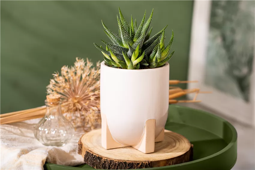 Haworthia 'Spider White' Nichts macht Zimmerpflanzen beliebter, als ein besonderes Aussehen. Und damit können diese Kandidaten auf jeden Fall punkten. Denn zu den wesentlichen Besonderheiten von Kakteen und Sukkulenten gehört die Optik, die unter den anderen Pflanzen ihresgleichen sucht. Die robusten Wüstenbewohner machen ihrer Herkunft alle Ehre und bringen eine ganz besondere Exotik in die eigenen vier Wände. Keine Pflanze ist wie die andere und gerade die einmaligen Blätter sind es, die die Besonderheiten von Kakteen und Sukkulenten ausmachen. Wer schon einmal eine Haworthia oder eine Aloe aristata gesehen hat, der weiß, warum diese Pflanzen so beliebt sind. Mit ihrer besonderen Optik passen sie in jedes Wohnkonzept und bereichern damit das Ambiente. Und weil die Vielfalt dieser Pflanzen so groß ist, kann man ganze Räume nur mit Kakteen und Sukkulenten gestalten und es würde nie langweilig werden. Echeverie, Feigenkaktus und Hauswurz bringen Abwechslung rein und sorgen mit ihren besonderen Blättern für hübsche Akzente. Langweilig wird es mit diesen Pflanzen garantiert nie!