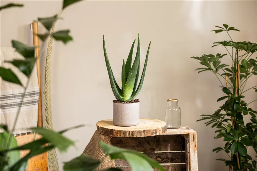 Aloe vera Zuerst mal steht völlig außer Frage, dass die Raumgestaltung mit Kakteen und Sukkulenten ein echtes Highlight ist. Denn die Pflanzen sind wahnsinnig vielfältig. Aber: Sie können noch viel mehr als nur gut aussehen. Wer beim Einrichten der eigenen vier Wände oder des Büros auf die kleinen Überlebenskünstler setzt, der holt sich pflegeleichte, robuste und nützliche Mitbewohner ins Haus, die man so schnell nicht mehr missen möchte. Denn durch ihre Heimat sind diese Pflanzen besonders gut an ihre Umwelt angepasst. Viele von ihnen speichern Wasser in ihren fleischigen Pflanzenteilen und können so problemlos mehrere Wochen ohne Gießwasser auskommen. Wer also nicht viel zu Hause ist oder die ein oder andere Pflanze beim Gießen gerne mal vergisst, der ist bei der Raumgestaltung mit Kakteen und Sukkulenten absolut auf der richtigen Seite. Aber nicht nur das: Einige Kandidaten haben auch eine luftreinigende Wirkung und verbessern damit das Klima im Raum. Im Schlafzimmer aufgestellt sorgt das für einen besseren Schlaf und wer bei der Raumgestaltung mit Kakteen und Sukkulenten arbeitet, kann sich eine eigene kleine Wohlfühloase schaffen.