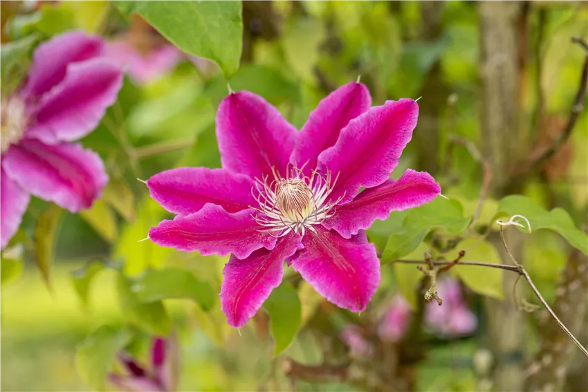 Clematis 'Dr. Ruppel' Kletterpflanzen kaufen ist immer dann eine gute Idee, wenn man den eigenen Garten in etwas ganz Besonderes verwandeln will und ein Märchen sucht. Denn kaum eine andere Pflanzengruppe sorgt für mehr mystische Stimmung, wie Kletterpflanzen.