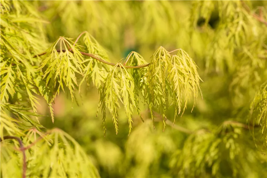 Acer palmatum 'Dissectum' Ein schöner Garten will gut gepflegt werden. Das gilt auch für das Laubgehölze pflegen. Hier kommt es vor allem auch den Rückschnitt zur richtigen Zeit, das Entfernen von Unkraut und das Gießen an. Dabei hängt die anfallende Arbeit beim Laubgehölze pflegen von der jeweiligen Jahreszeit ab. Der Rückschnitt erfolgt in der Regel im Frühjahr. Das hängt aber ganz von der jeweiligen Pflanze ab. Gegossen werden muss besonders im Sommer öfter. Gerade wenn die Laubgehölze im Frühjahr gepflanzt wurden, sind sie im Sommer auf eine regelmäßige Wassergabe angewiesen. Denn dann sind die Wurzeln noch nicht so tief gewachsen, dass sie für eine ausreichende Wasserversorgung aus der Erde sorgen können. Werden die Gehölze im Herbst gepflanzt, sind sie bereit im darauffolgenden Sommer tiefer eingewurzelt. Auch Unkraut spielt eine Rolle beim Laubgehölze pflegen. Denn das kann gerade den jungen Wurzeln schnell Konkurrenz machen und sollte das ganze Jahr über regelmäßig entfernt werden. Eine gute Möglichkeit, die Ausbreitung von Unkraut zu verhindern, sind Bodendecker als Unterpflanzung. Die wurzeln nicht so tief, wie Unkraut und verhindern gleichzeitig, dass sich dieses ausbreiten kann. Und wenn sie schattenverträglich sind, sehen sie unter den Laubgehölzen auch noch sehr hübsch aus.
