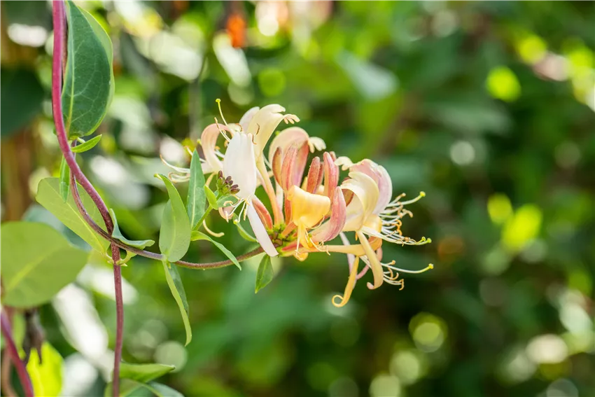 Lonicera heckrottii 'Goldflame' Wer bei der Gartengestaltung so richtig Aufsehen erregen will, der sorgt dafür, dass es auch im Winter nicht langweilig im Garten wird. Und womit ginge das besser als mit immergrünen Pflanzen? Davon gibt es auch einige kletternde Kandidaten, die mit ihren besonderen Blättern auch im Winter für gute Laune, zuverlässigen Sichtschutz oder Versteckmöglichkeiten sorgen. Besonders beliebt: Gemeiner Efeu. Anders als sein Name vermuten lässt, ist der Efeu ein sehr genügsamer und angenehmer Gast im Garten. Als Kletterpflanze ist er unschlagbar, weil er in kürzester Zeit die höchsten Zonen im Garten erklimmt. Und dabei braucht er nicht mal eine Rankhilfe. Efeu kann sich mit seinen Zweigen von allein an Hauswänden und Co. festhalten. Ganz schön praktisch, oder? Ebenso beliebt ist die Kriechspindel. Obwohl sie eigentlich als Bodendecker in Gärten zu finden ist, ist sie auch ein beeindruckender Kletterkünstler. Ihre bunten Blätter sorgen für Abwechslung im Garten und bringen damit gute Laune und ordentlich Farbe in den sonst so kalten und tristen Winter.