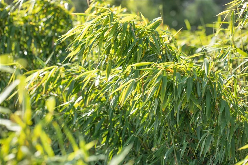 Fargesia Bambus kann so richtig beruhigend wirken. Deshalb kann man bei der Gartengestaltung mit Bambus kleine Ruheoasen schaffen, in denen man sich ganz entspannt zurücklehnen und vom stressigen Alltag entspannen kann. Dafür braucht es nicht unbedingt ein asiatisches Gartenkonzept, denn die frischen grünen Blätter des Bambus bringen oft schon ausreichend Ruhe mit sich. Kombinieren kann man das Gras bei der Gartengestaltung mit Bambus aber mit einem Wasserspiel, einer bequemen Bank und einem Fächerahorn. Pflanzt man den Bambus in den Hintergrund, kann man sich einen kleinen grünen Sichtschutz erschaffen, der für ausreichend Privatsphäre sorgt. Zwergbambus im Vordergrund kann dann das Gesamtbild abrunden. Und egal, ob im Beet oder im Kübel: Bei der Gartengestaltung mit Bambus sind die Möglichkeiten nahezu unendlich. Und ein Garten wird im Handumdrehen schöner als der andere!