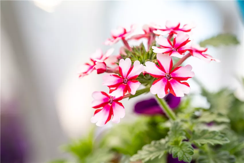 Verbena Hybride, weiß-rot Ob Hängepflanzen oder Kübelpflanzen, ob im Beet oder auf der Terrasse, mit der richtigen Erde und den passenden Pflanzen steht dem Blütenparadies auf dem Balkon oder im Beet nichts mehr im Wege. Das bedeutet aber auch, dass Pflanzabstände eingehalten werden und Beet und Balkonkasten nicht zu dicht bepflanzt werden. Dafür gibt es eine Faustregel, an die sich jeder Hobbygärtner halten sollte. Für ein Pflanzgefäß mit einem Durchmesser von einem Meter gilt: 4 bis 5 Pflanzen einsetzen. Dafür werden die Gefäße bis zur Hälfte mit Erde befüllt und die Pflanzen vorsichtig aus den Pflanztöpfen herausgenommen. Nach der langen Zeit im zu engen Gefäß sind die Wurzelballen der Pflanzen stark gepresst und können mit der Hand einfach aufgelockert werden. Dann dürfen die Pflanzen einziehen, die Erde aufgefüllt werden und anschließend folgt eine ordentliche Portion Wasser. Damit steht der Blütenpracht im neuen Jahr nichts mehr im Wege.