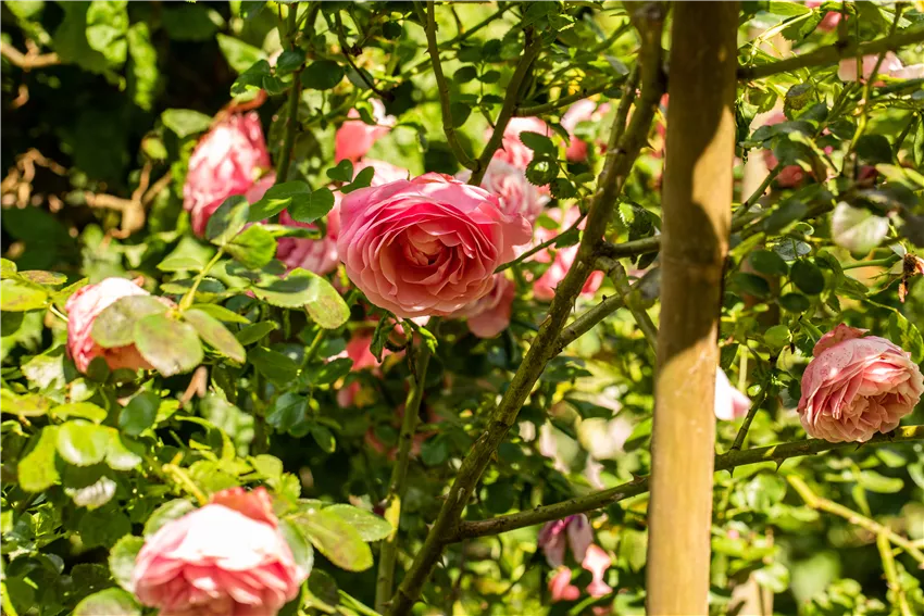 Kletterrose, rosa Beim Rosen pflegen gibt es auch ein paar Maßnahmen, die ein bisschen mehr Arbeit in Anspruch nehmen, dafür aber für eine optimale Gesundheit der Pflanzen sorgen. Dazu gehört vor allem der Rückschnitt im Frühjahr, bei dem die Rosen gepflegt werden. Hierbei werden abgestorbene und verwelkte Pflanzenteile entfernt, damit die Rosen ihre gesamte Energie in die Bildung neuer Triebe stecken. Außerdem werden die Pflanzen ausgelichtet, damit die neuen Triebe genügend Sonnenlicht bekommen. Wichtig sind diese Maßnahmen vor allem, weil gesunde Rosen weniger anfällig für Krankheiten und Schädlinge sind. Denn gesunde Rosen haben mehr natürliche Abwehrkräfte und können einen Angriff von kleinen Krabblern oder Bakterien damit besser verkraften. Wer seine Rosen pflegen und dabei richtig vorgehen will, der sollte sich auch beim Kauf schon über die speziellen Bedürfnisse der Pflanze informieren. Dann kann im Garten, auf dem Balkon oder auf der Terrasse nichts mehr schief gehen.