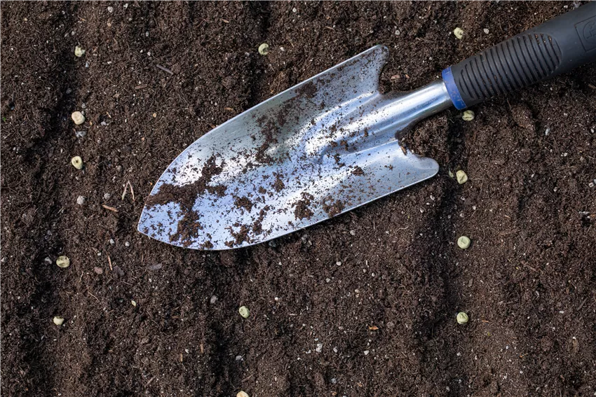 Aussaat - Schaufel in Erde