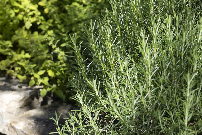 Bei der Anordnung der Kräuter im Beet, sollte auf die Wuchshöhe geachtet werden. Niedrig wachsende Kräuter gehören an den Rand des Kräuterbeets. Dazu zählt zum Beispiel der Thymian, der so auch über die Abgrenzung aus Naturstein wachsen kann und sie integriert. So bleibt auch wenig Platz für unerwünschtes Unkraut im Beet, das sich zwischen den Natursteinen ansiedeln möchte. Im mittleren Bereich des Beets können mediterrane Kräuter platziert werden, die auch nur mittelhoch wachsen. Hier würden sich zum Beispiel Lavendel und Salbei eignen. Den Abschluss im hinteren Bereich machen dann die höher wachsenden Kräuter. Dazu zählt zum Beispiel der Rosmarin. Durch diese Anordnung werden sich die Kräuter auch bei einem ebenerdigen Beet nicht unnötig verschatten und können sich gut entwickeln.