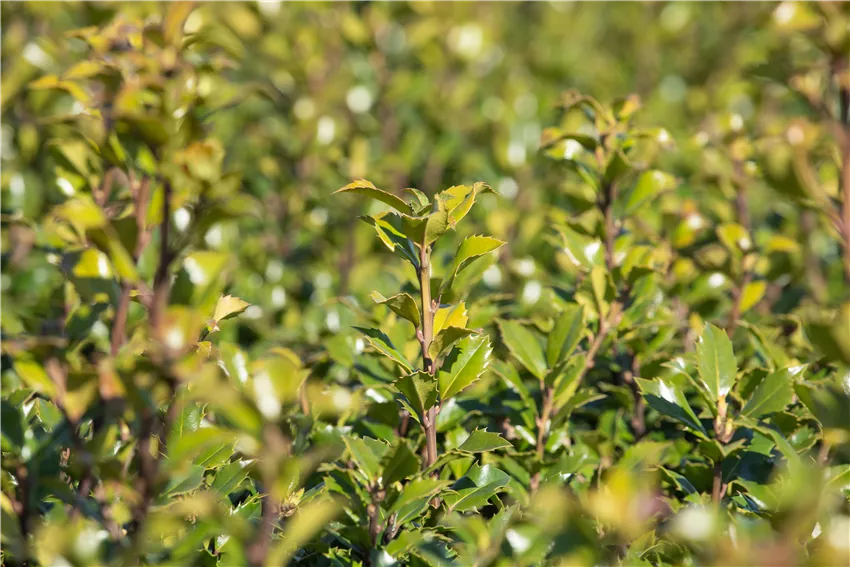 Ilex meserveae 'Little Rascal'® Hecken gehören zu den beliebtesten immergrünen Pflanzen, da sie sich als elegant wirkender Wind- und Sichtschutz eignen. Außerdem gibt es eine große Auswahl an diesen typischen Heckenpflanzen, die zudem auch vielen Tieren ein geschütztes Zuhause bieten. Selbst der stärkste Frost macht den meisten dieser immergrünen Exemplaren nichts aus, weshalb sie zu jeder Jahreszeit toll aussehen. In kürzester Zeit wachsen viele immergrünen Heckenpflanzen zu einem blickdichten Sichtschutz heran und geben dem Garten einen Rahmen aus lebendigem Grün. So ist die Privatsphäre schnell geschützt und der Garten auch optisch von der Außenwelt abgeschirmt. Auch innerhalb des Gartens verleihen immergrüne Hecken dem Garten Struktur. Ob Stechpalme, Buchsbaum oder andere Heckenpflanzen: Diese immergrünen Pflanzen lassen sich überall im Garten einsetzen.