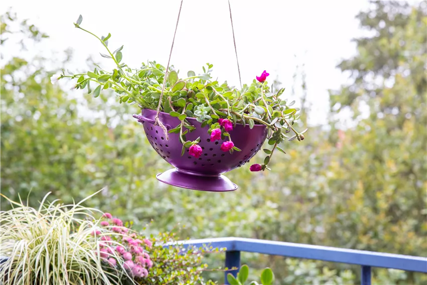 Upcycling - Pflanze in Küchensieb Mit den schönsten DIY Ideen für den Balkon kann man sich seine eigene kleine Wohlfühloase schaffen.