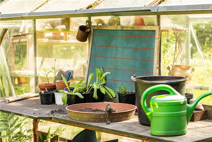 Pflanztisch am Gewächshaus