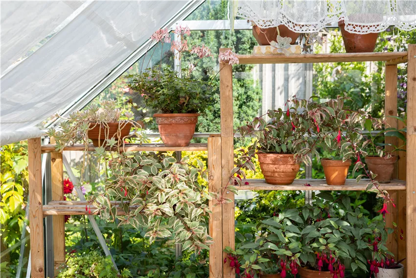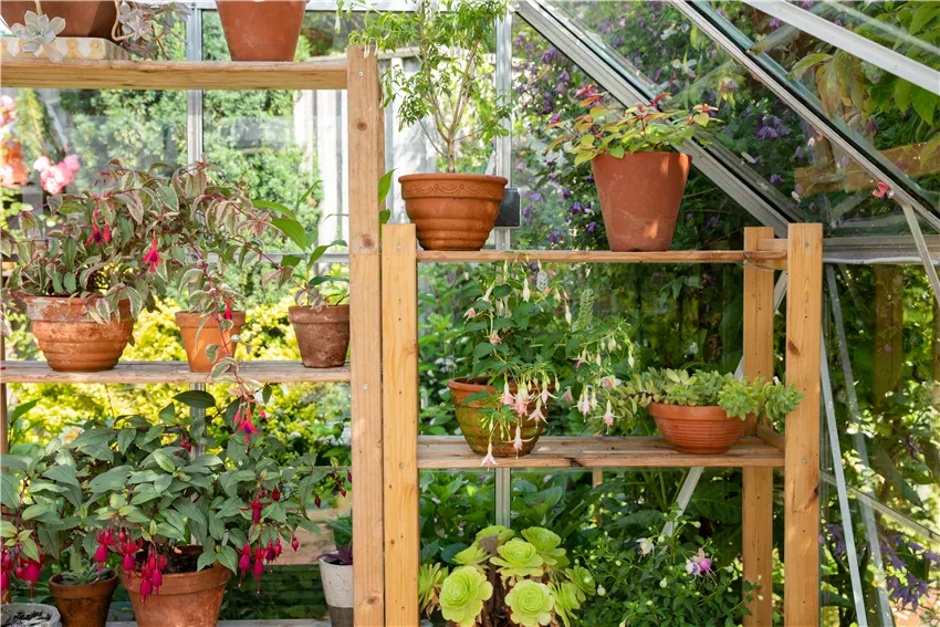 Pflanzregal im Gewächshaus