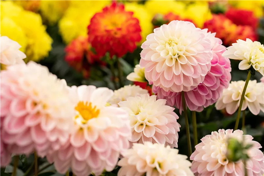 Dahlia DALAYA® Meena 'Kala' Neben den beliebten Frühblühern gibt es auch Zwiebelpflanzen, die im Sommer oder Herbst blühen. Sommerblühende Zwiebel- und Knollenpflanzen pflegen funktioniert nahezu genauso, wie bei den Frühblühern. Die Blüten werden ebenfalls nach der Blüte abgeschnitten und die Pflanzenteile bis in den Herbst stehen gelassen. Auch hier lagern sich der Saft und die Nährstoffe in den Zwiebeln ein, die im nächsten Jahr wieder frische Energie geben. Wann der richtige Zeitpunkt für den Rückschnitt gekommen ist, hängt beim Zwiebel- und Knollenpflanzen pflegen also von der Art und der Sorte der Pflanzen ab. Wichtig bei sommerblühenden Zwiebelblumen: Die Zwiebeln und Knollen müssen vor dem ersten Frost aus der Erde geholt werden. Auch das gehört zum Zwiebel- und Knollenpflanzen pflegen dazu. Denn die empfindlichen Sommerblüher brauchen, im Gegensatz zu den Frühblühern, keinen Kältereiz. Im Gegenteil, sie würden erfrieren und im nächsten Jahr nicht wieder austreiben. Also heißt es, nachdem die Pflanzenteile verwelkt sind: Schnipp schnapp, Blätter ab und ab ins Winterquartier. Das sollte beim Zwiebel- und Knollenpflanzen pflegen trocken und frostfrei sein. Ein Keller oder Gartenhaus eignet sich dafür besonders gut.