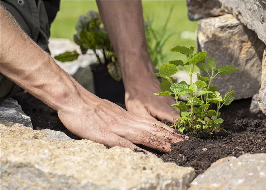 Zitronenmelisse einpflanzen Im Fachhandel werden eine Vielzahl an Kräuterspiralen aus unterschiedlichen Materialien angeboten. Je nach Gartenstil kann man sich eine Spirale aus Holz, Kunststoff oder Metall, mit Rostlook oder in Edelstahl, aussuchen. Die klassische Kräuterschnecke ist aber aus Naturstein. Stein hat den Vorteil, dass damit die Wärme gut gespeichert werden kann, was den Pflanzen zugutekommt. Es gibt Bausätze für Kräuterspiralen, aber sie sind auch recht einfach selbst gebaut. Sie sollten an einem sonnigen Standort errichtet werden und nicht zu klein konzipiert werden. Als erstes sollte ein Fundament ausgehoben und etwa zehn Zentimeter mit Schotter aufgefüllt werden, damit sich später keine Staunässe bildet. Wenn man einen Teich möchte, sollte dieser rund 40 Zentimeter tief sein. Die Kräuterschnecke sollte sich nach Süden öffnen. Am besten geeignet ist eine Kräuterschnecke, die mit flachen Steinen aus Natursteinen errichtet wird. Hier ist es nicht nötig, die Steine mit Mörtel zu verbinden, was den Pflanzen zusätzliche Ausbreitungsmöglichkeiten bietet. Und mit etwas Glück siedeln sich in der Trockenmauer auch Eidechsen an, was wiederum zur Vielfalt im Garten beiträgt. Es gibt aber noch eine Menge anderer Möglichkeiten, um eine Kräuterschnecke in Eigenbau anzulegen. Man benötigt nur ein wenig Fantasie und handwerkliches Geschick.