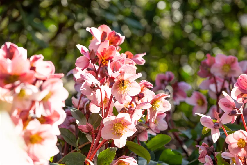 Helleborus Hybride 'HGC® Pink Frost' Damit sich die Stauden im eigenen Garten auch so richtig wohlfühlen können, kommt es aus Standort, Boden und Pflege an. Der Standort sollte am besten im Halbschatten liegen, denn damit kommt die Stauden am besten zurecht. Generell gilt: Je sonniger der Standort, desto mehr Wasser wird benötigt. Zu schattig sollten die Pflanzen nicht stehen, weil sie dann nicht so üppig blühen. Als Unterpflanzung für Gehölze sollten Christrosen also nicht verwendet werden. Der Boden sollte nährstoffreich, humos und alkalisch sein. Wichtig ist, dass keine Staunässe entsteht und der Boden durchlässig ist. Schwere und verdichtete Böden kann man mit einer Drainageschicht aus Kalkschotter aufbessern. Kalkhaltiges Substrat ist bei Christrosen ebenfalls beliebt. Was die Pflege angeht, benötigen die Stauden nicht viel Aufmerksamkeit. Dünger ist aber immer gerne gesehen und so kann im Frühjahr während der Blüte und im Sommer nach der Blüte gedüngt werden. Ersteres sorgt für eine längere Blüte, zweiteres stärkt die Wurzelbildung und garantiert frische Knospen im neuen Jahr. Umpflanzen muss man die Christrosen nicht, wenn immer ausreichend Nährstoffe vorhanden sind und der Boden nicht ausgelaugt ist.