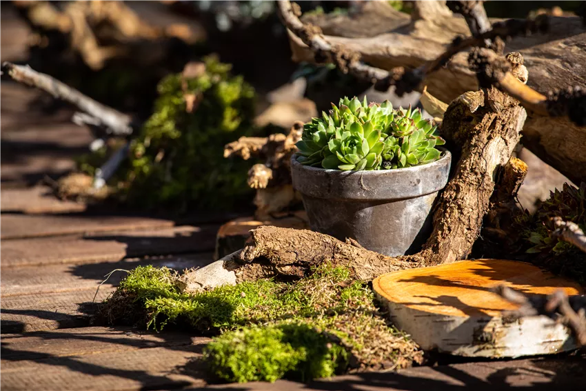 Sempervivum im Tontopf Ein gesundes und üppiges Wachstum steht und fällt mit dem richtigen Substrat. Deshalb gehört zum Kakteen und Sukkulenten pflegen in erster Linie, das richtige Zuhause zu finden. Das sollte an die natürliche Umgebung der Wüstenbewohner angepasst sein. Was das bedeutet? Wo viele andere Pflanzen dankend ablehnen, freuen sich Kakteen und Sukkulenten über einen sandigen, nährstoffarmen und eher trockenen Untergrund. Dafür kann man entweder spezielle Kakteenerde verwenden, oder man mischt sich das ideale Substrat aus verschiedenen Materialen zusammen. In jedem Fall sollte man darauf achten, dass das Gefäß, indem die Pflanzen wachsen, Abzugslöcher enthält. Zum Kakteen und Sukkulenten pflegen gehört nämlich auch das richtige Gießverhalten. Und Staunässe gilt es dabei unbedingt zu vermeiden. Mit der kommen die Gewächse trotz ihrer Robustheit nicht zurecht und bevorzugen lieber ein trockenes Zuhause.