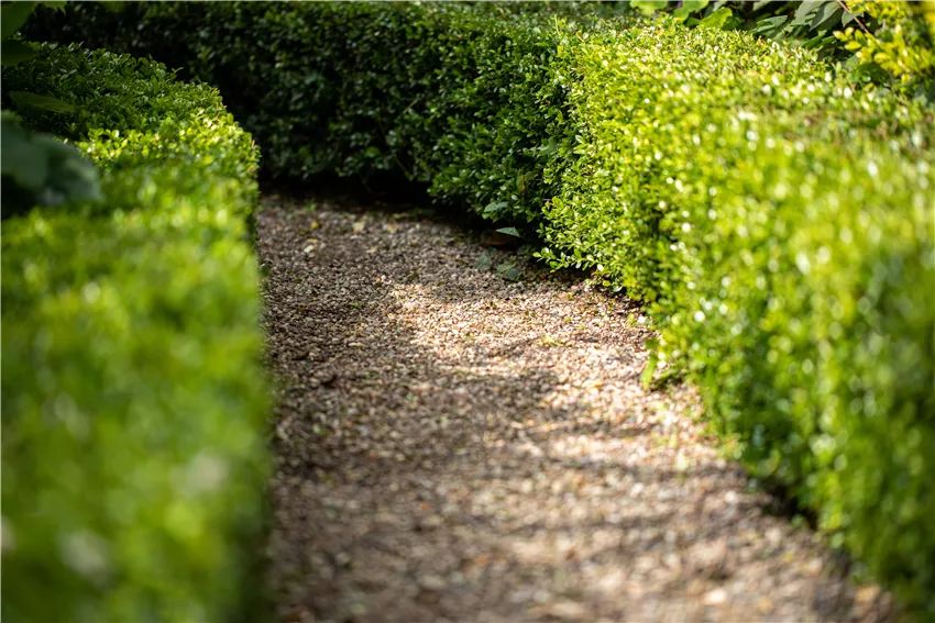 Hecke mit Weg Beim Hecken pflanzen kommt es vor allem auf den passenden Abstand an, damit keine Lücken entstehen. Die würden zum Spionieren einladen und stören die lang ersehnte Ruhe im eigenen Garten. Damit kein Nachbar den Kopf durch die neue Hecke stecken kann, ist der Pflanzabstand entscheidend. Der richtet sich ganz nach der jeweiligen Heckenpflanze, weil alle Pflanzen unterschiedliche Wuchseigenschaften haben. Glanzmispel und Kirschlorbeer zum Beispiel wachsen sehr in die Breite und man benötigt weniger Pflanzen pro laufenden Meter. Aber es gibt einen Richtwert, an den sich jeder Hobbygärtner halten kann. Grundsätzlich sagt man je nach Größe der Pflanze 2 bis 3, 3 bis 4, oder 4 bis 5 Pflanzen je laufenden Meter. Beim Hecken pflanzen rechnet man also für den ersten Meter 5 Pflanzen ein, für jeden weiteren Meter 4. Man kann sich beim Kauf bereits darüber beraten lassen, welche Pflanzen welche Wuchseigenschaften haben und wie viele Pflanzen damit pro laufenden Meter benötigt werden. Geduld ist hier aber das A und O, denn eine blickdichte Hecke bildet sich nicht unmittelbar nach dem Hecken pflanzen.